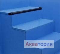 Если в конструкции бассейна присутствует бетонная лестница, то для устройства пленочного покрытия на лестнице наиболее целесообразно применять крепежный уголок. При укладке крепежной полосы или крепежного уголка необходимо добиться такого расположения крепежных элементов, при котором будет возможно закрепление пленочных листов лестницы с натяжкой. При таком подходе практически все угловые грани будут закрыты крепежными элементами, вследствие чего лучше применять крепежный уголок, так как он позволяет сократить частоту засверливания при закреплении к основанию.